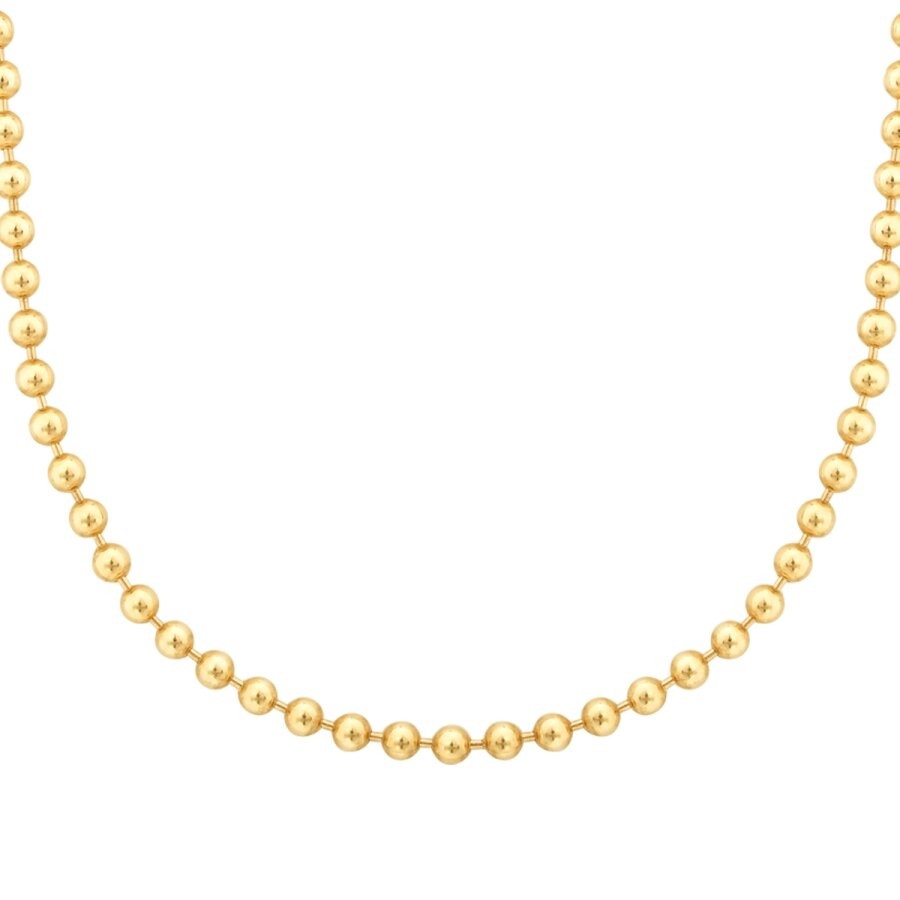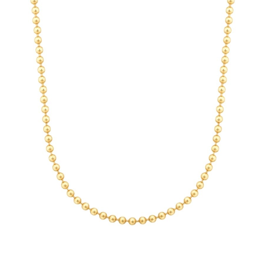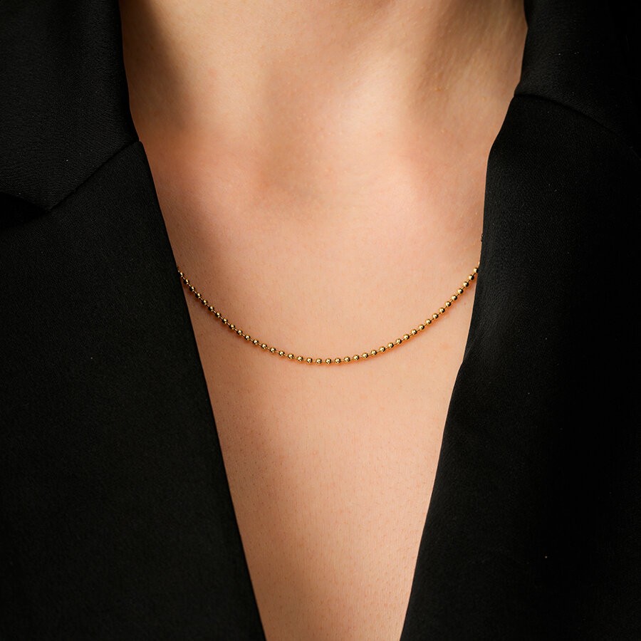Yumuşak hatlı kürelerin bir araya gelmesiyle oluşan bu kolye, klasik inci dizimlerine modern ve altın bir alternatif sunuyor. Altının her bir küre üzerindeki pürüzsüz yansıması, dekoltenize sofistike ve taze bir görünüm kazandırıyor. Modern lüksün en rafine örneklerinden biri olan bu tasarım, gündüzden geceye her anınıza eşlik etmeye hazır.
