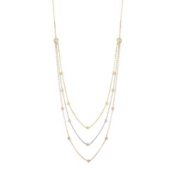 Estetik ve zarif tasarımıyla göz kamaştıran Altın Üç Renk Toptop Kolye, şıklığınızı tamamlayacak mükemmel bir aksesuardır. Üç farklı renk tonunun uyumlu kombinasyonuyla dikkat çeken bu kolye, her tarza ve her ortama uyum sağlar. İnce detaylarıyla öne çıkan bu kolye, her kadının gardırobunda olması gereken bir parçadır. Şıklığınızı tamamlayacak olan Altın Üç Renk Toptop Kolye, her anınıza değer katacaktır.