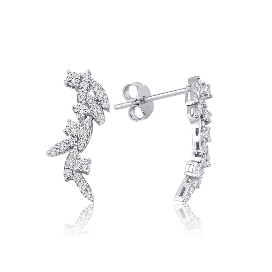 Yumuşak hatlara sahip bu zarif küpe, doğanın ilham verici formunu stilinize taşır. Yaprak figürüyle sade ama anlamlı bir şıklık sunarken, parlak taş detaylarıyla modern çizgileri tamamlar.